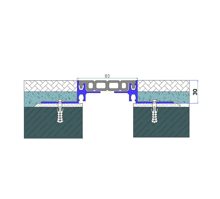 Under floor dilatation profile with flat top surface.