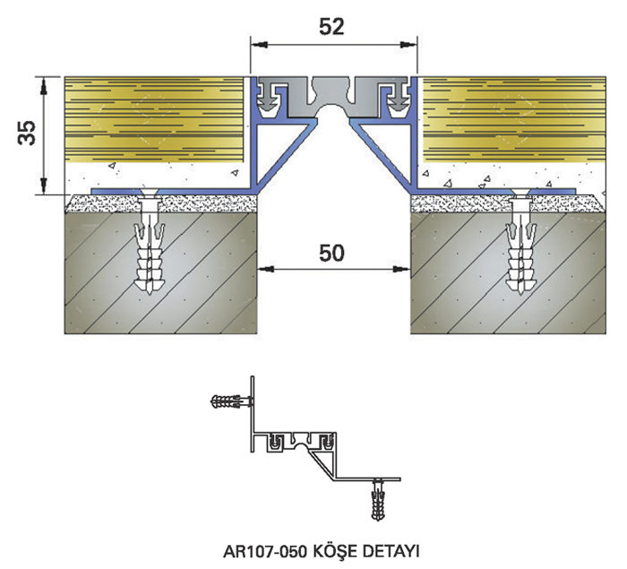 Under-coating dilatation profile suitable for floor coverings such as granite, industrial floor and screed.