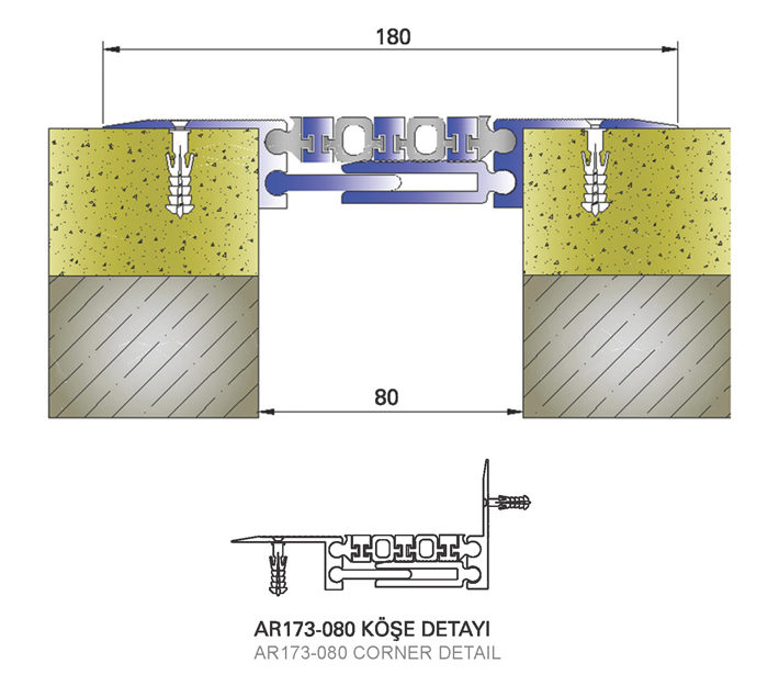 Granite, ceramic, vinyl, industrial floor … etc. floor dilatation profile with mounting holes suitable for coatings. The profile is shipped assembled.