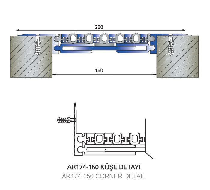 Overlay floor dilatation profile for 15cm clearance. The profile is shipped with screw holes and assembled.