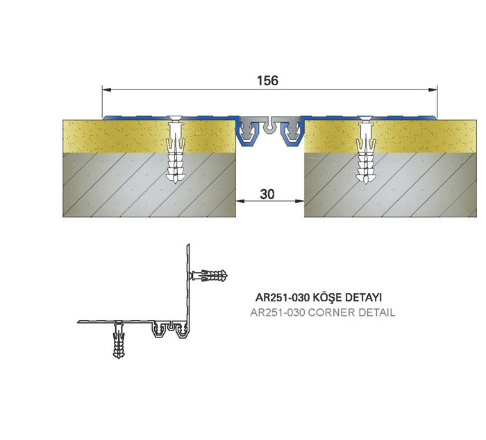 Anodized wall ceiling dilatation profile on plaster.