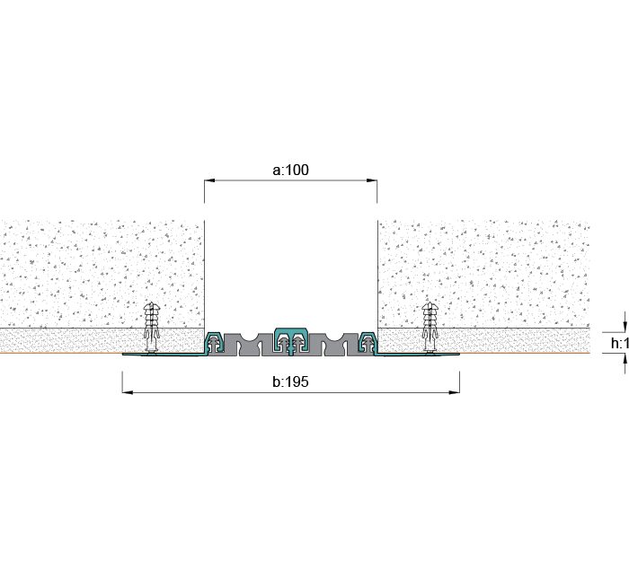 Anodised, Surface Mounted Expansion Joint Wall & Ceiling Profile with screw holes.