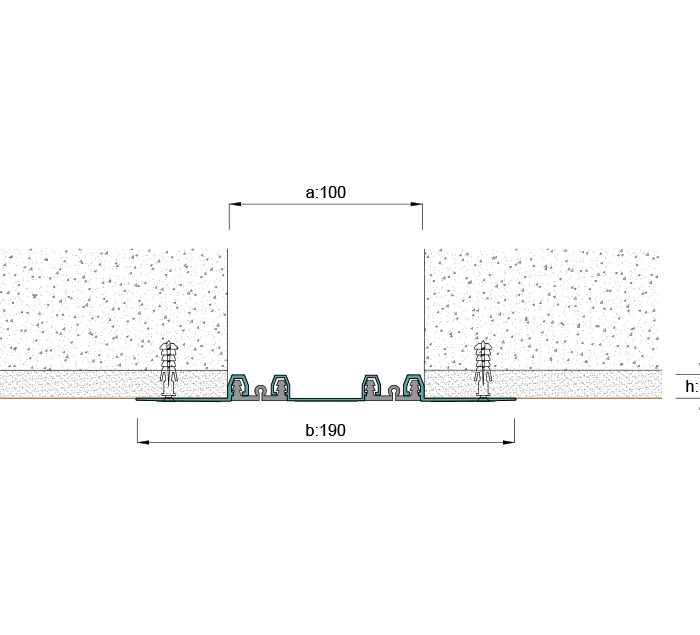 Anodised, Surface Mounted Expansion Joint Wall & Ceiling Profiles with screw holes.