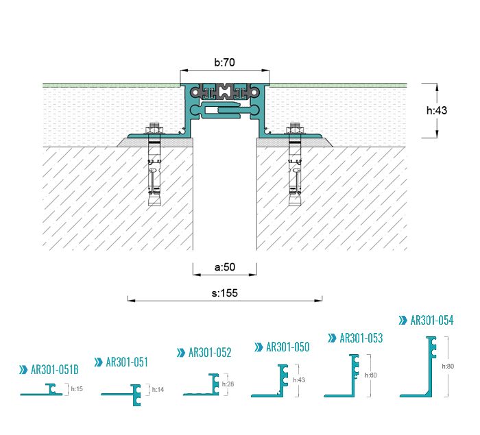 Flush Mounted Expansion Joint Profile compatible with PVC floors, ceramic, granite etc.