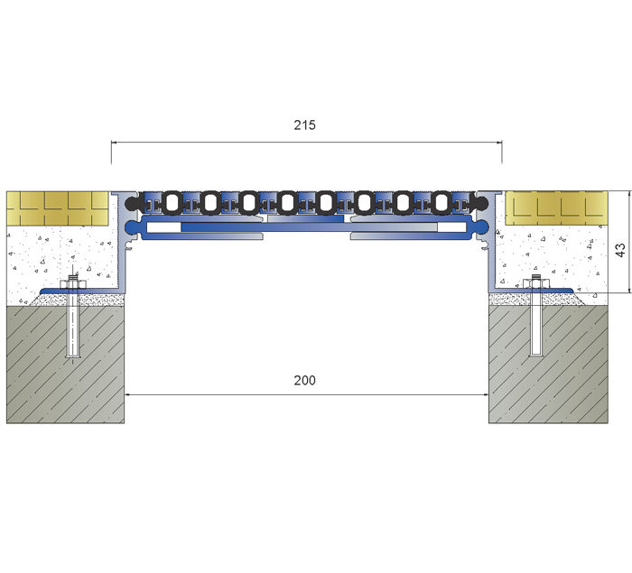 Coating subfloor dilatation profile for 20cm clearance. The profile is shipped assembled.