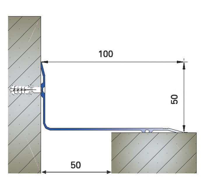 Wall-ceiling-floor corner cover profile in dimensions 50mm x 100mm.