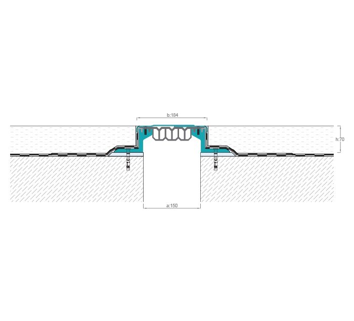 Full top stainless steel Expansion Joint profile Compatible with rubber based bituminous membrane which provides waterproofing and suitable for Waterproofing required areas such as terrace, parking lots. When thermal insulation applied on the water insultaion, profile system should be raised by heel concrete. It is recommended to use geotextile on the membrane for protection.