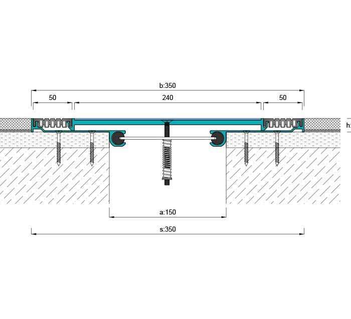 Flush Mounted Seismic Expansion Joint Floor Profile suitable for thin floor finishings and especially for PVC or epoxy floorings. It has high movement capacity and wide TPE inserts.