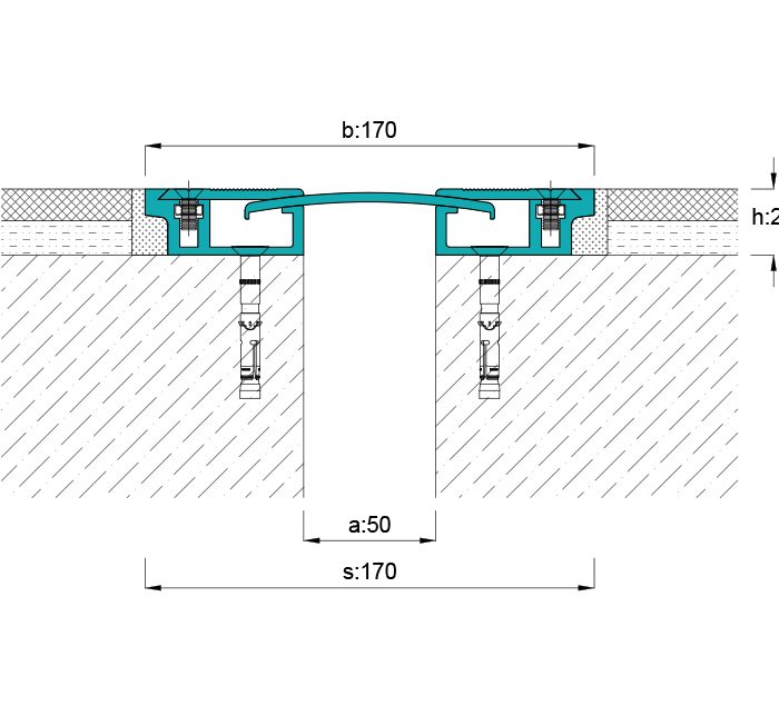 Flush Mounted Seismic Expansion Joint Profile with high movement capacity, full aluminium surface and resistant to light vehicle traffic.
