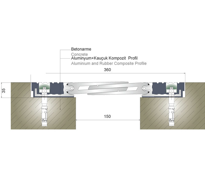 Composite dilatation profile made of aluminum and rubber for car parks, industrial buildings.