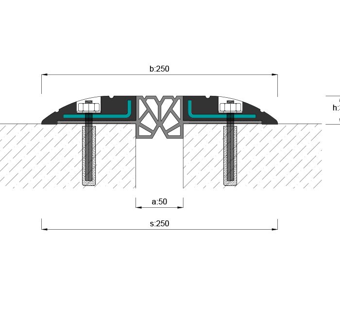 Speed Hump shaped, ST37 grade steel and rubber composite Surface Mounted Floor Expansion Joint Profile suitable for Parking Lots.
