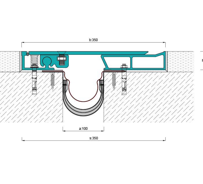 Flush Mounted Expansion Joint Profile with aluminium top surface and high movement capacity. One side Hinged