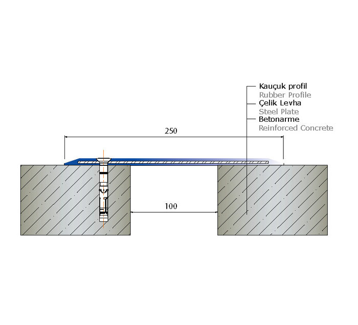Floor dilatation profile made of ST37 steel and rubber used in car park dilatations
