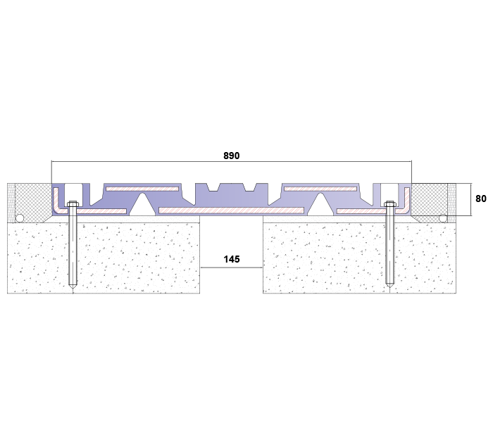 ‘’ARBRIDGE06’’ rubber bridge expansion joints used for 145 mm movements, consisting of a waterproof rubber and steel plates, absorbs movements of the bridge. This system produces in factory under high temperature and pressure with rubber plates and steel plates. This is a result of the production system, ARFEN bridge expansion joints, guaranteed against corrosion for long-lasting solution. Rubber is strong against to surface oil, grease, oil, chemicals, resistant to UV rays, snow and salt. All expansion joints are designed to absorb movements and expansions of the structure by changing their shape. Expansion joints of different sizes are fixed to the reinforced concrete from both sides by using of suitable corrosion-resistant galvanized anchor bolts and chemical anchors to absorb elastic reactions, mechanical vibrations and other movements of the structure.
