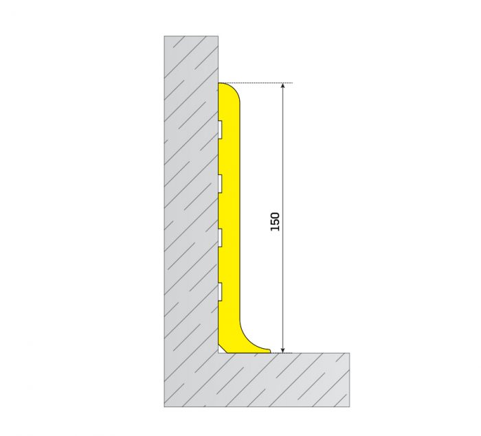 Technical Specifications 150 mm high hygienic PVC baseboard system. Color alternatives: Yellow Note: Special color production is possible for high quantity orders.
